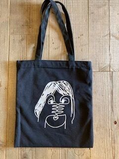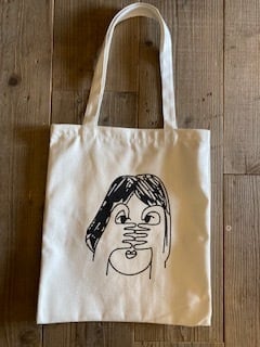 個性的な女の子のイラストが描かれたトートバッグ