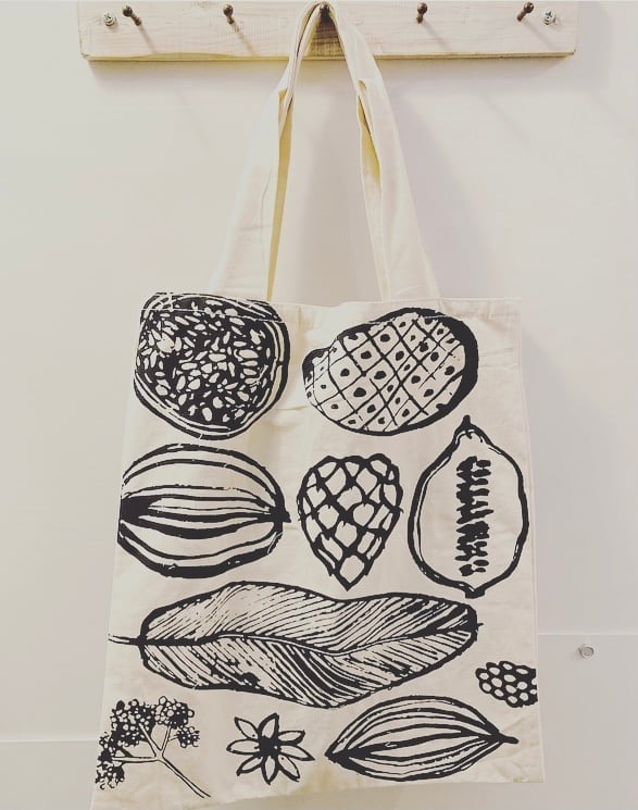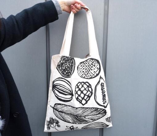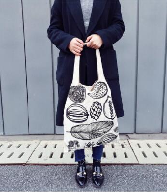 収納x2,ポケットx1 プリント収納大キャンバス生地バッグ。