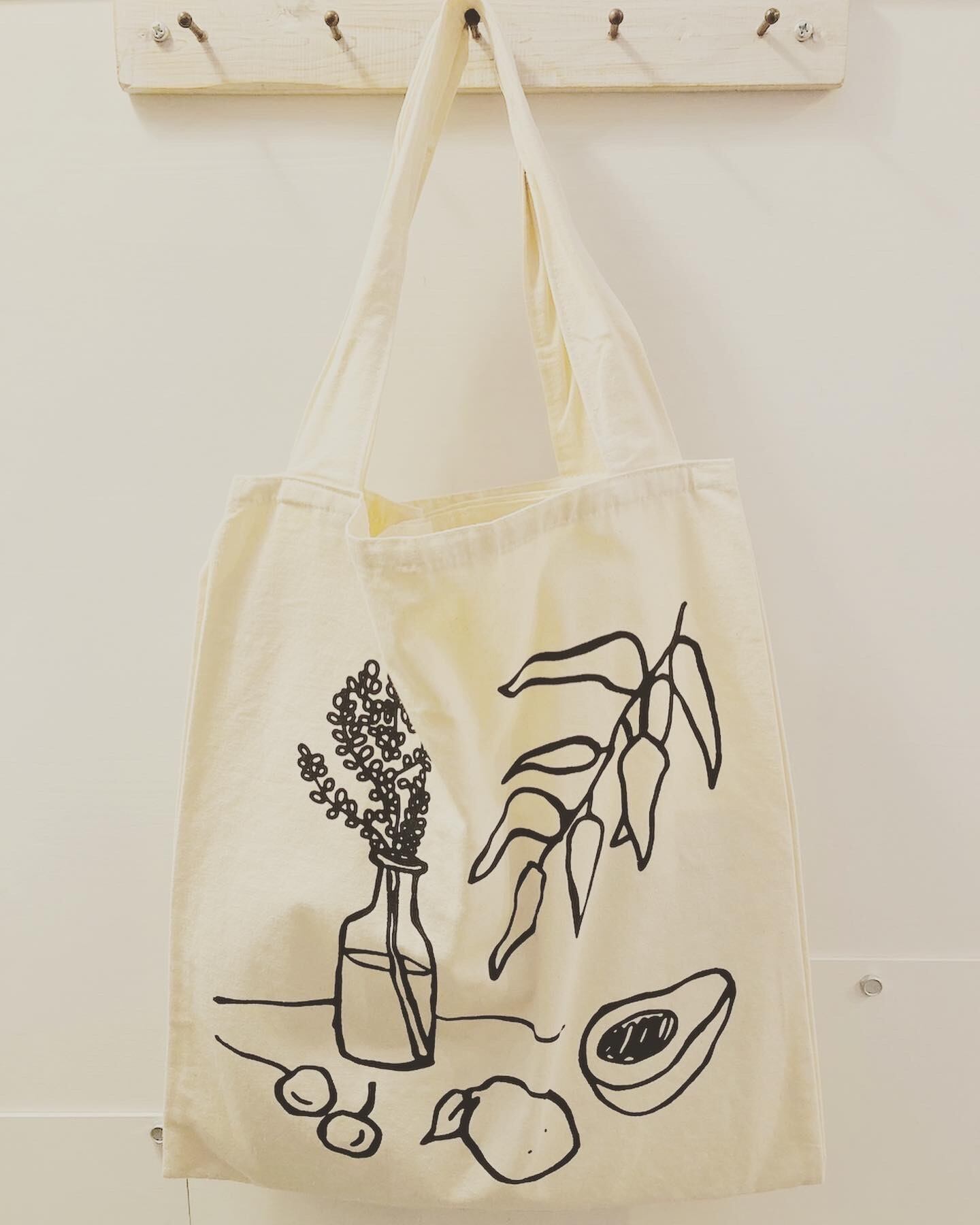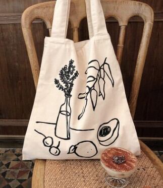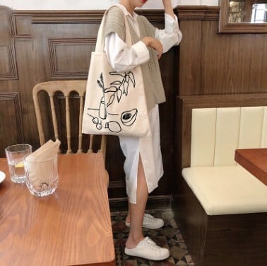 収納x2,ポケットx1 アボガドプリント収納大キャンバス生地バッグ 4216 hard