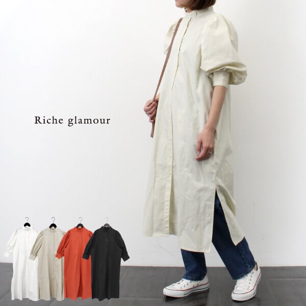 50sブロードの素材感もいい感じで大人のお洒落感が魅力の50sブロードボリュームスリーブワンピース☆