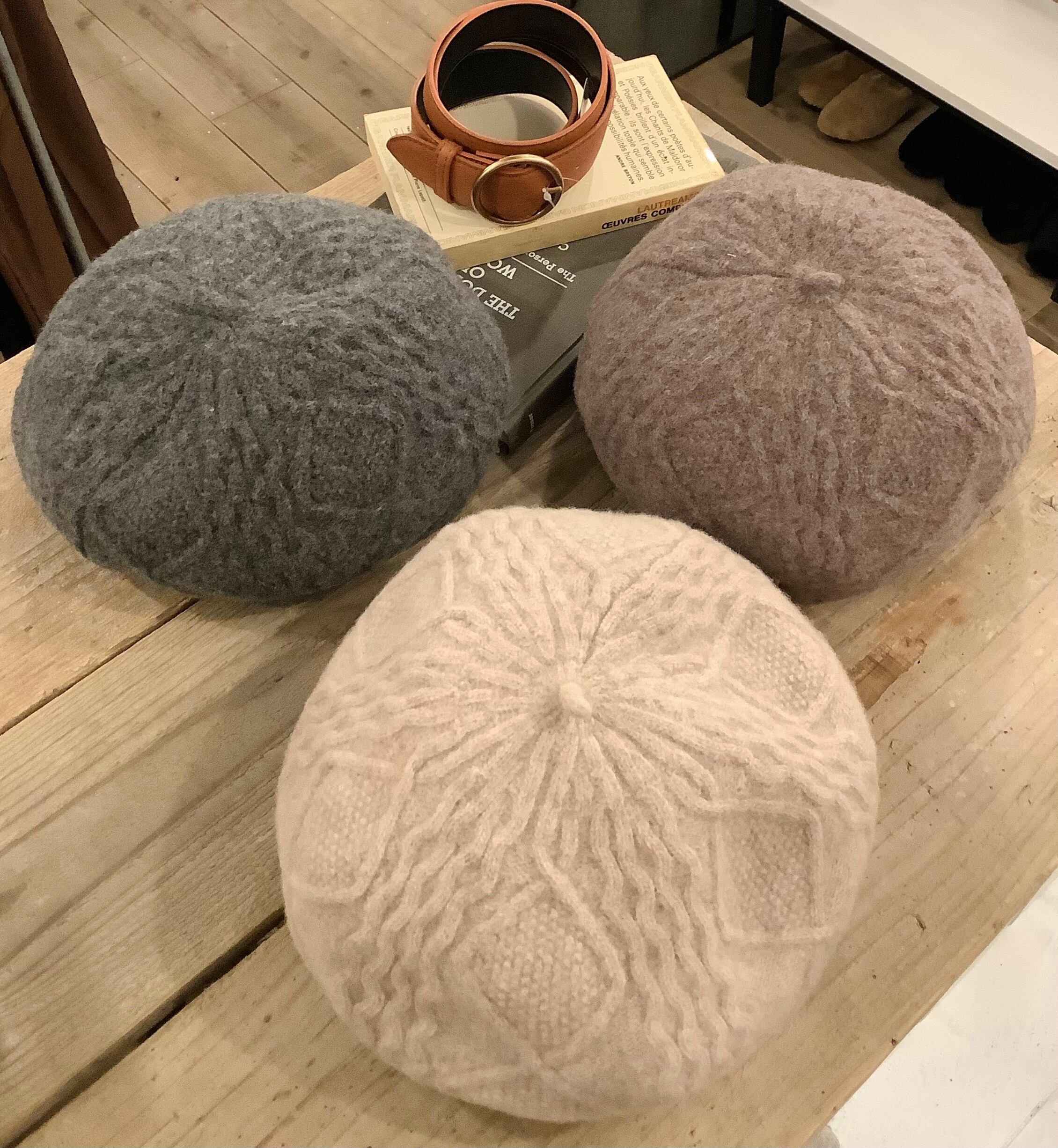 冬コーデにぴったりなニット模様がかわいいウールベレーです。