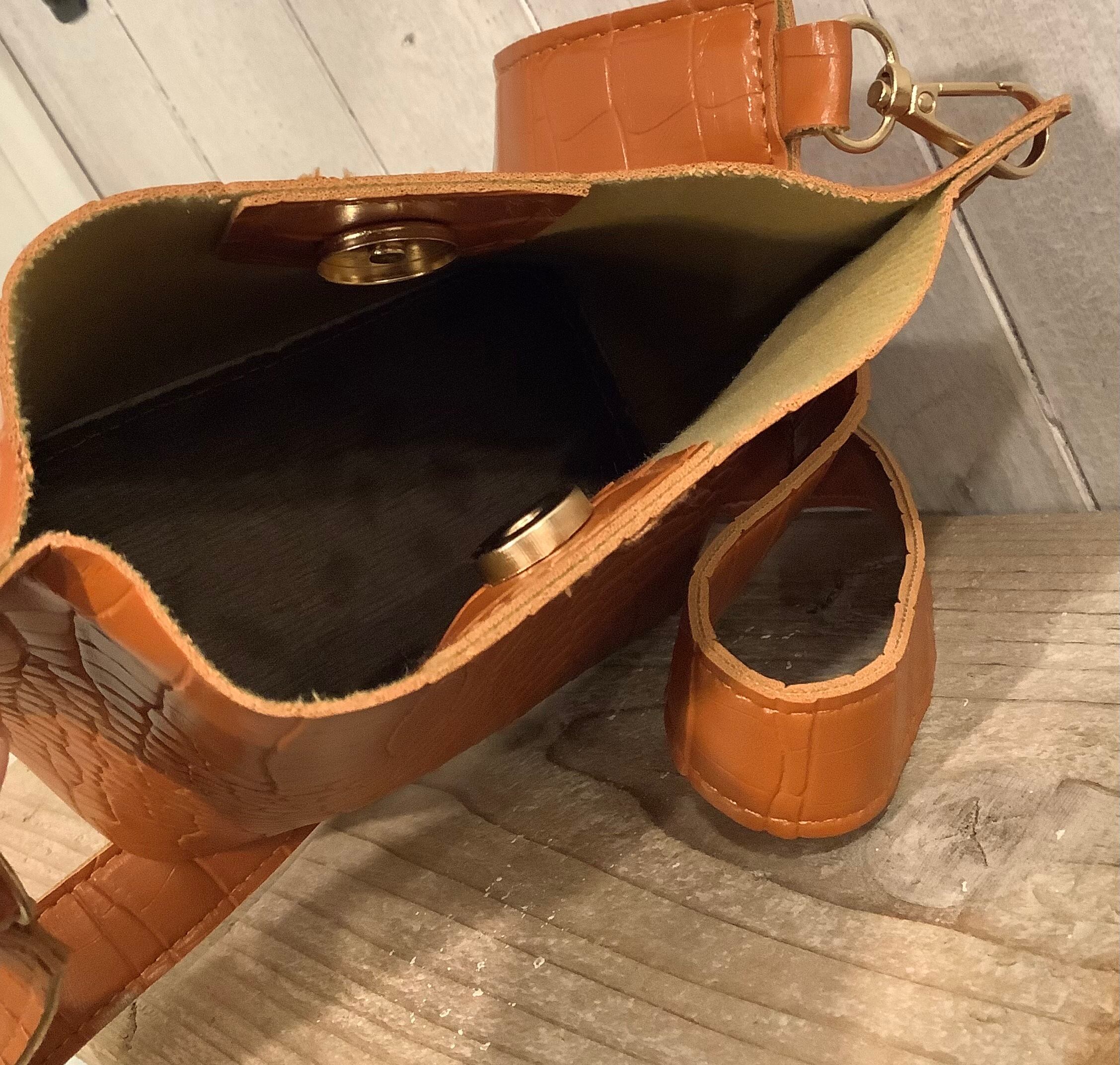 クロコ柄とワンポイントロゴ、ショルダーの幅などが絶妙なバランス感☆