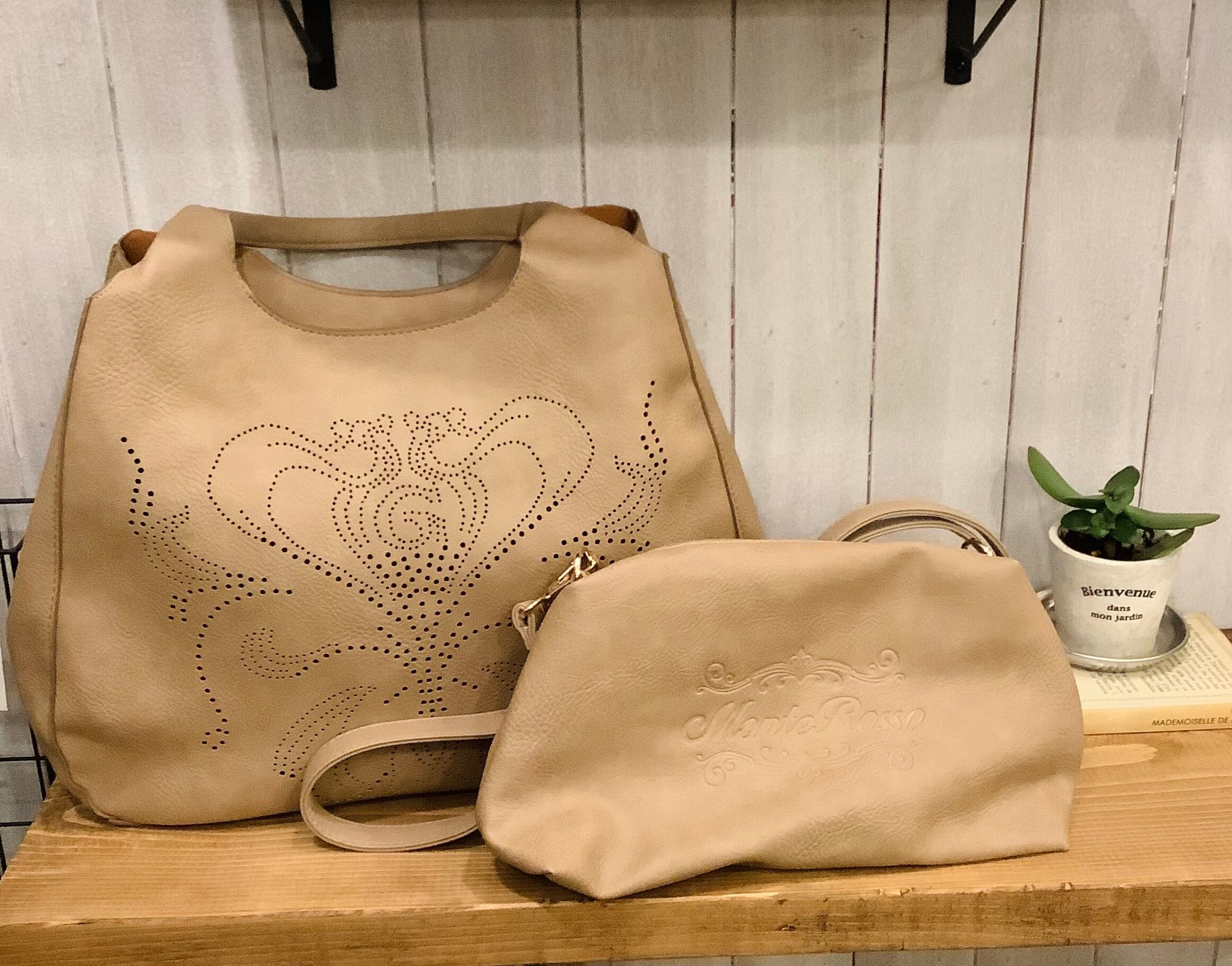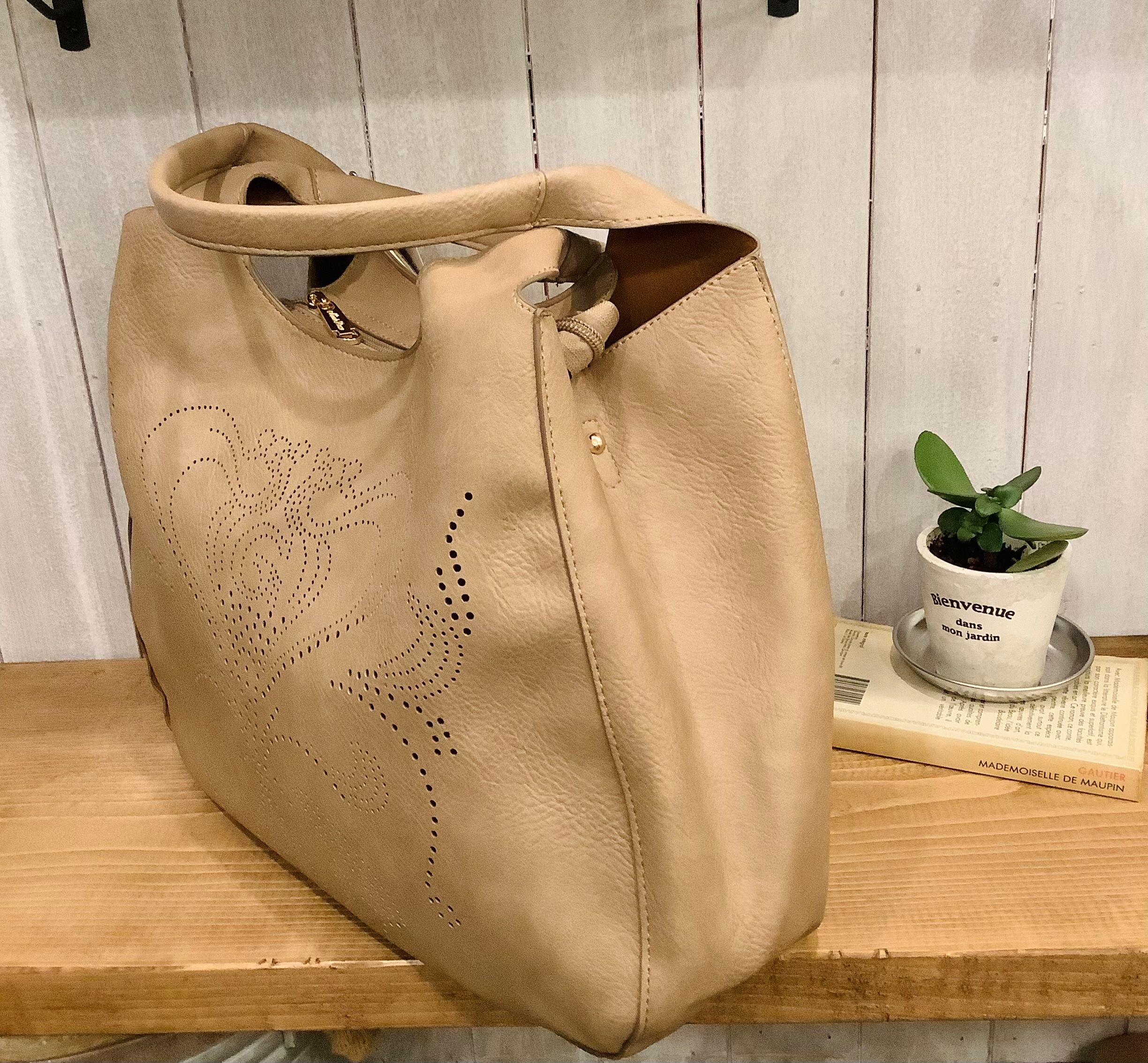 渋めのデザインで大人っぽい印象の大きめバッグ。