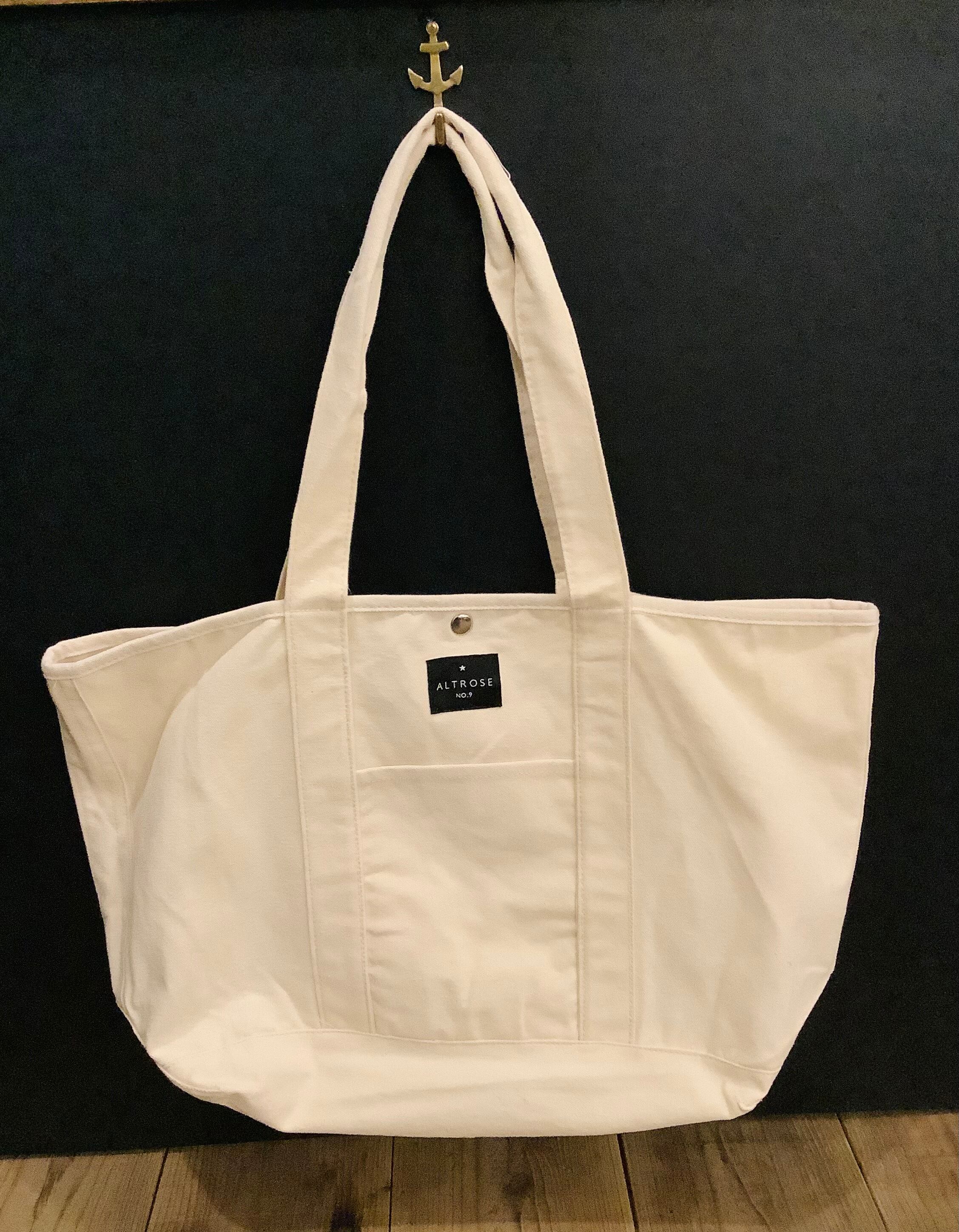 シンプル定番ロゴデザインが使いやすい大きめトートバッグ。