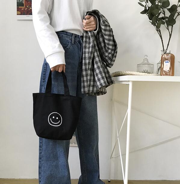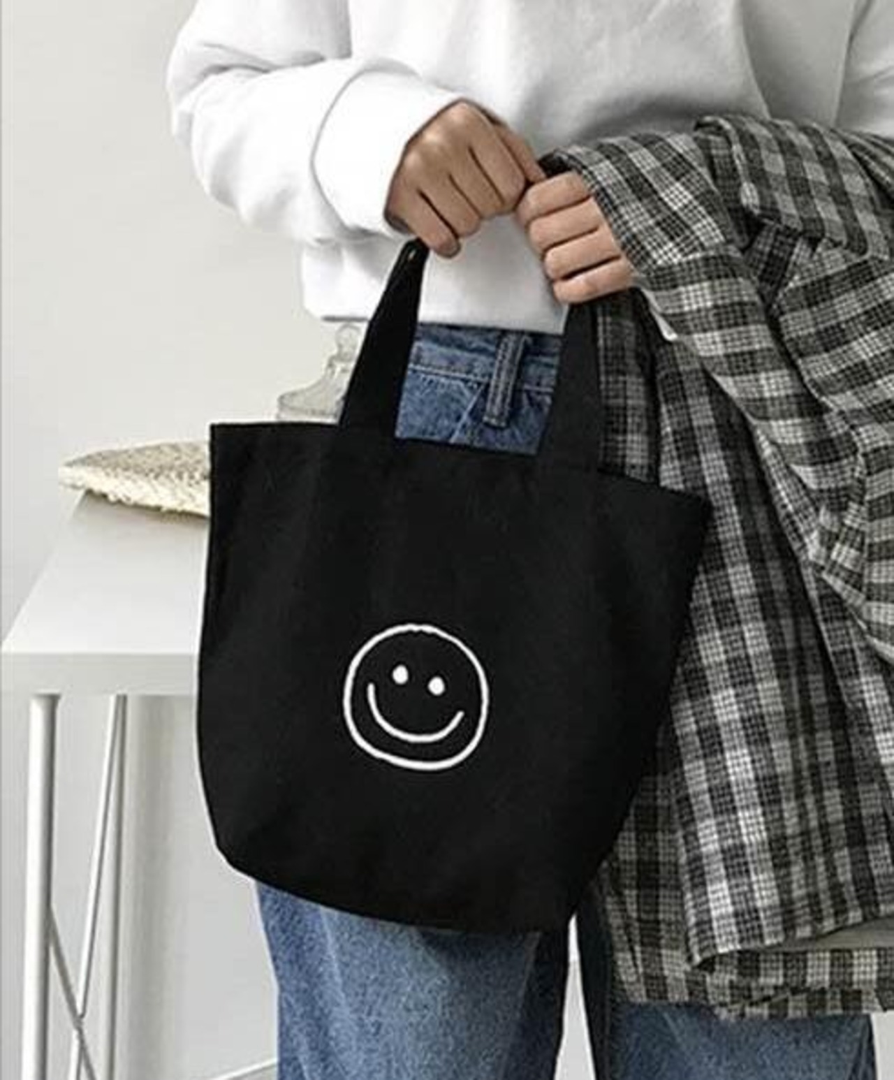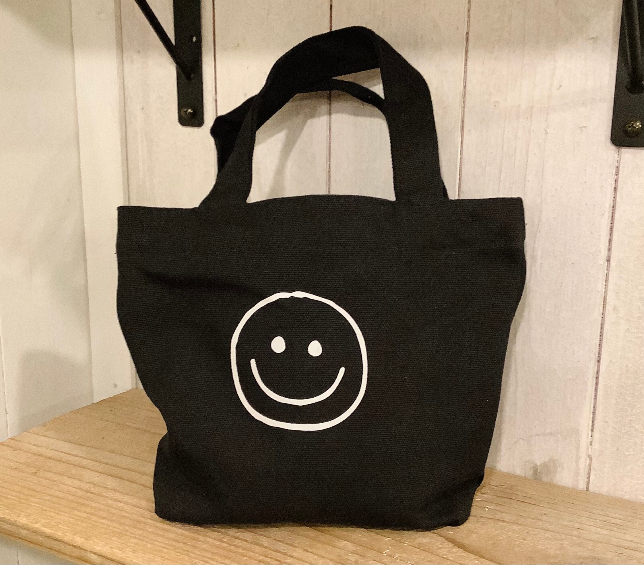 スマイルプリントがポイントの様々な用途に使えるミニバッグ。